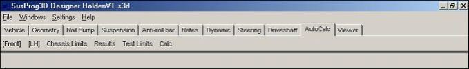 Flowing on, the Anti-roll bar tab provides inputs for roll-bar mounting