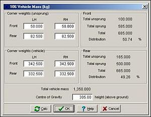 dimensions, tyre spring rate, corner weights, centre of gravity, brake